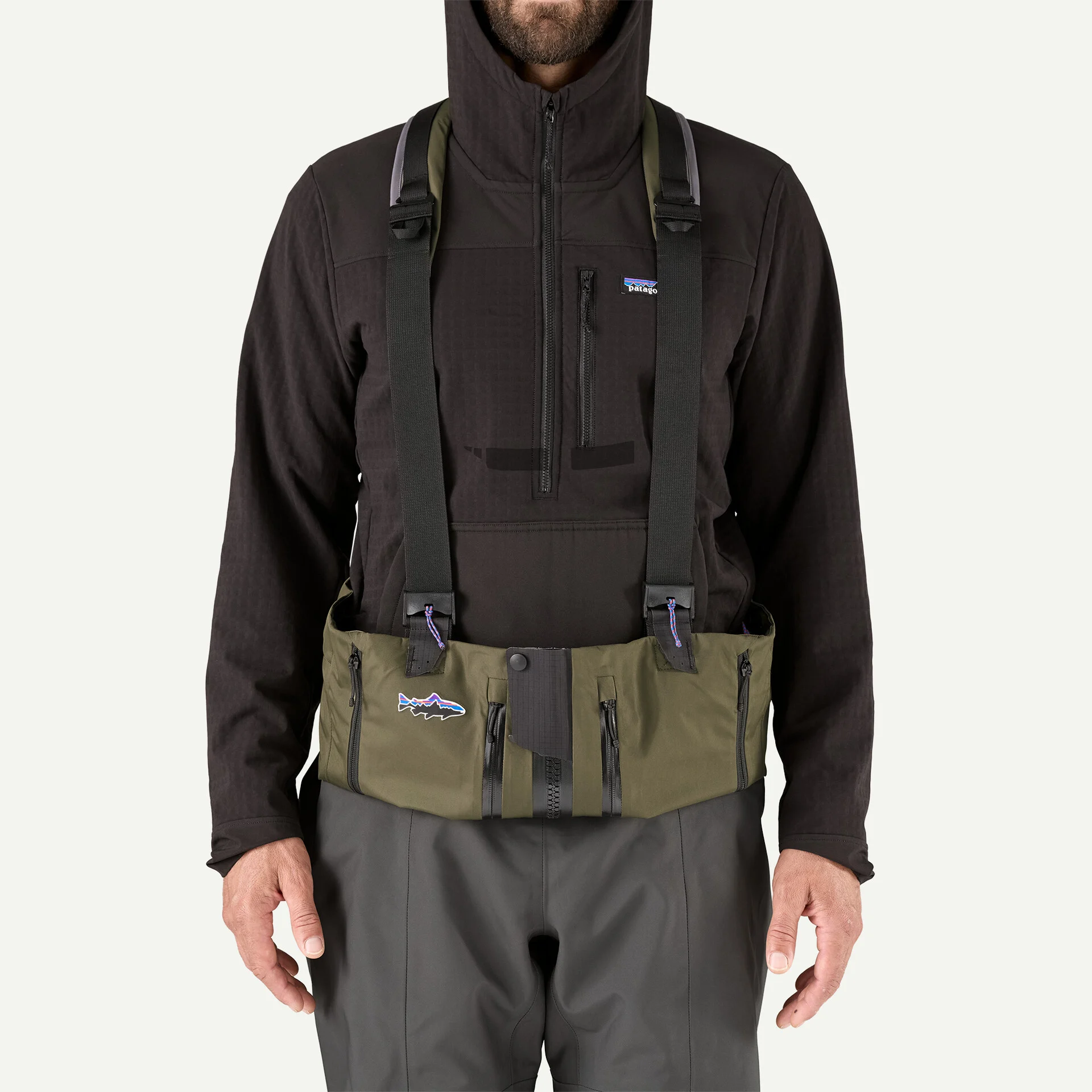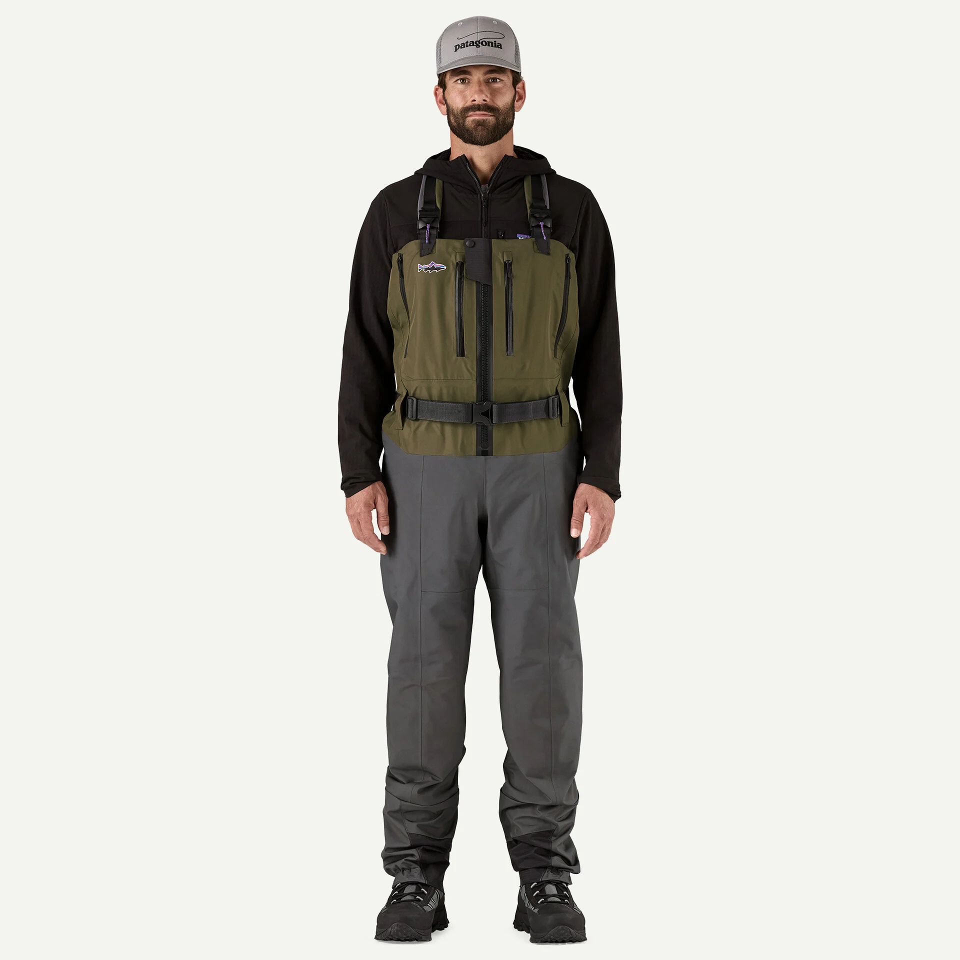 Submersible YKK® front zipper for ease while layering underneath and quick streamside relief; fully adjustable, quick-release suspenders offer easy chest- to waist-high conversion; with a top-hem drawcord and a Secure Stretch wading belt